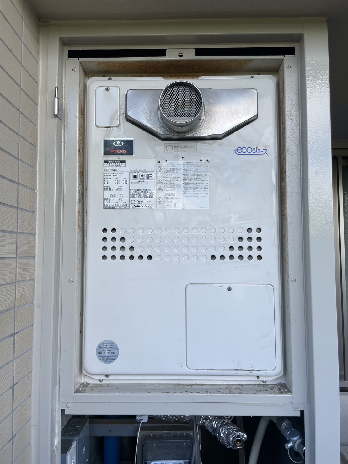 埼玉県東加須市でガス給湯器(PS設置)のお取替え