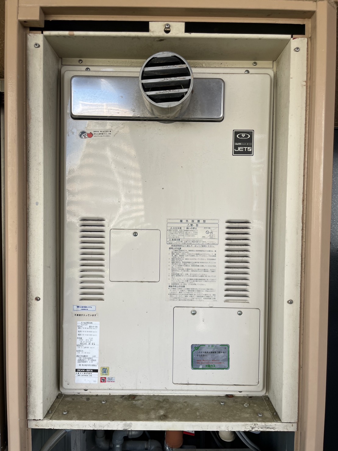 埼玉県嵐山町でガス給湯器(PS内設置タイプ)のお取替え